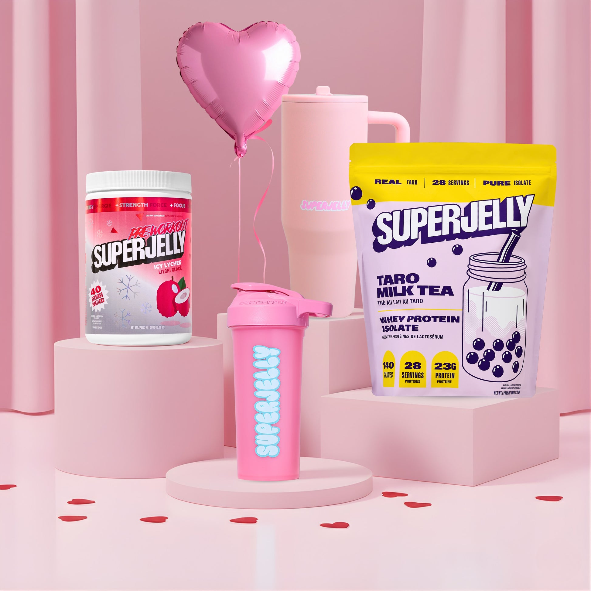 LOVE JELLY is our Valentine’s-exclusive pink bundle made for gifting, self-love, and main-character gym energy.