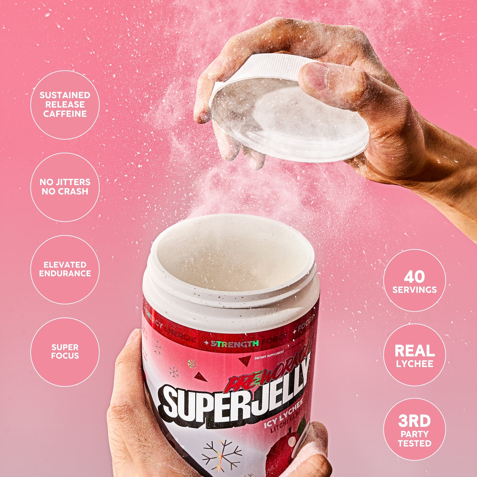 Bright, juicy, and energizing without the crash. This fruity lychee pre is your go-to for Pilates, gym days, or any moment you need a little extra spark.